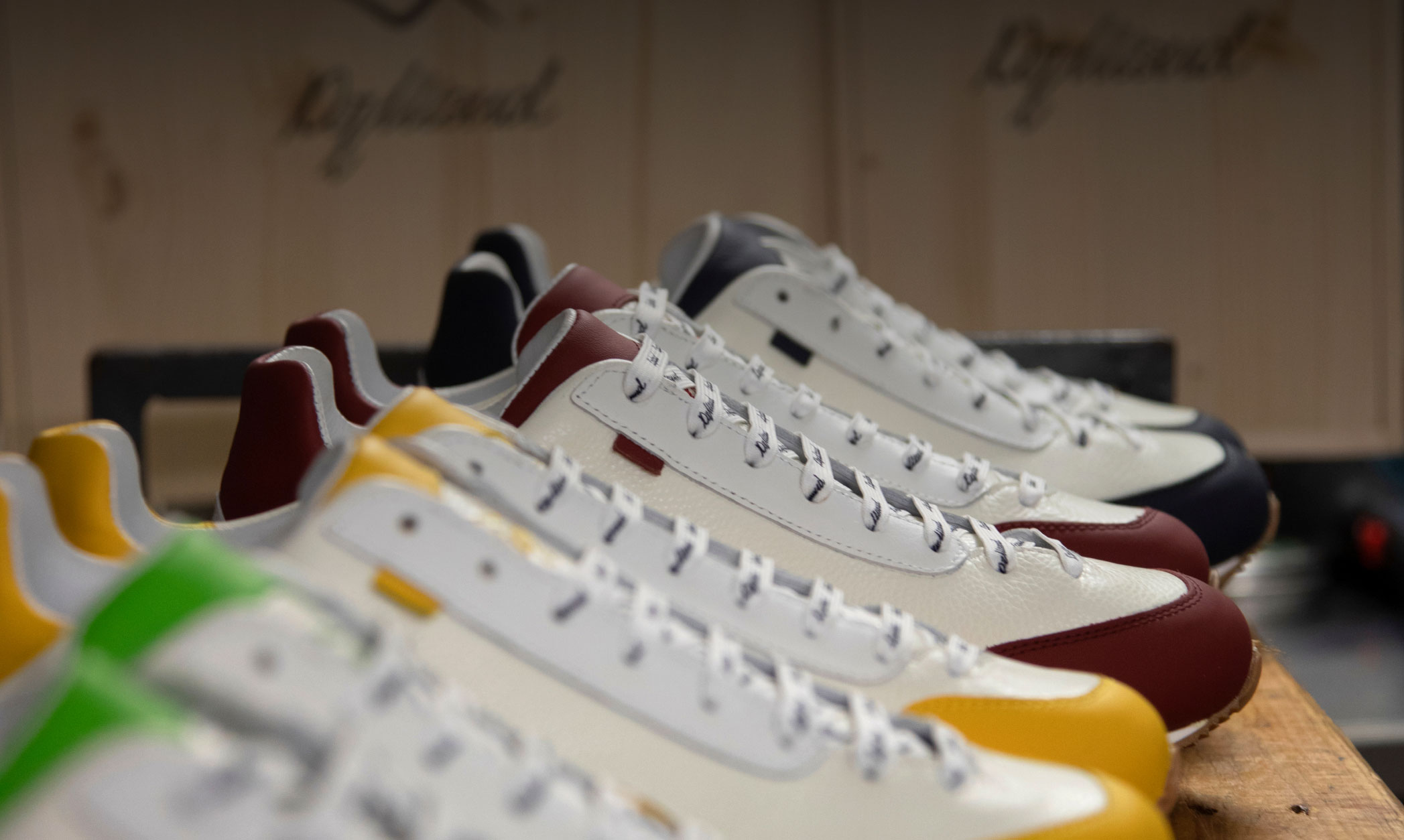 Die Schuhe und ihre Verpackung werden dann in eine Holzverpackung mit elegantem und schlichtem Design gelegt, die aufgrund ihrer Fähigkeit, eine Verbindung zwischen Natur und Handwerkskunst herzustellen, ausgewählt wurde.